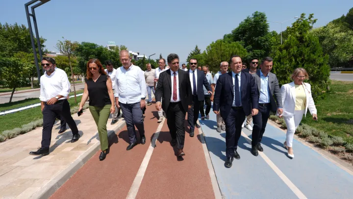 Manisa Büyükşehir Belediye Başkanı Besim Dutlulu, Akhisar'da gerçekleştirilen asfalt çalışmaları ile Eski Tren Yolu Peyzaj Projesi'nde incelemelerde bulundu. Vatandaşların ihtiyaç duyduğu her noktada çalışmalara aralıksız devam edeceklerini altını çizen Başkan Besim Dutlulu, merkez çarşı esnafını da ziyaret ederek her zaman sahada, halkın ve esnafın yanında olacaklarını vurguladı.