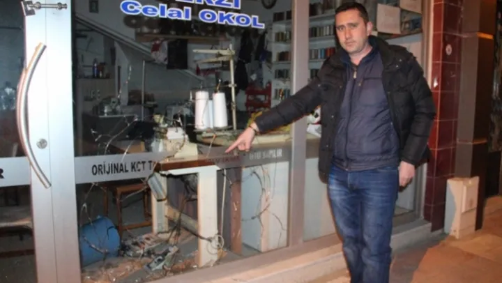 Manisa'da dün gece yarısı bir terzi dükkânına çirkin saldırı yapılarak camları kırıldı.