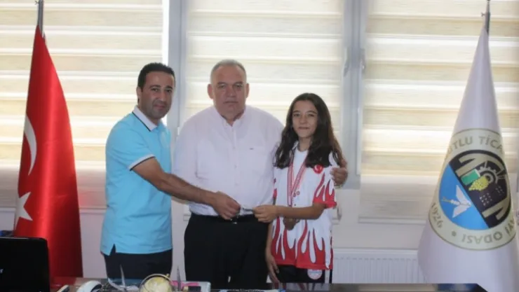 Başkan Aydın, Antalya’da 11-14 Ağustos tarihlerinde düzenlenen yaklaşık 2500 sporcunun yarıştığı minikler Türkiye Taekwondo Şampiyonasında Türkiye 3.’lüğü elde eden Edanur Uluman’ı ağırladı.