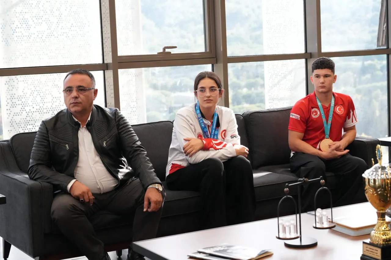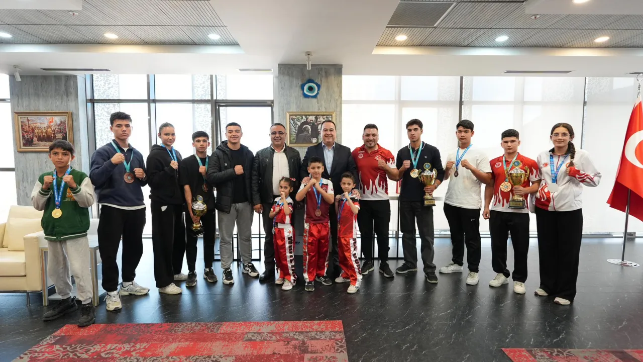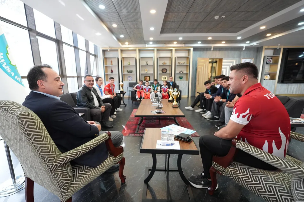 Manisa Büyükşehir Belediye Başkanı Besim Dutlulu, Türkiye Kick Boks Federasyonu Manisa İl Temsilcisi Tayfun Özcan, antrenör Arda Karataş, şampiyon sporcular ve Haber Kasaba Gazetesi İmtiyaz Sahibi Haşim Karataş'ı makamında ağırladı.