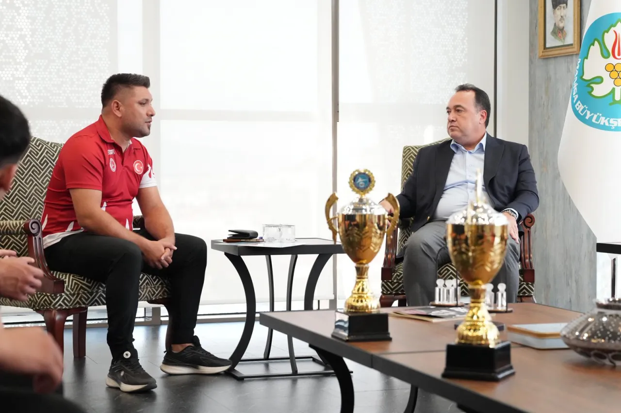 Ziyarette Manisa’da sporun gelişimi, gençlerin spora teşviki ve şampiyon sporcuların desteklenmesine yönelik istişarelerde bulunuldu. Başkan Dutlulu, spora verdikleri önemin altını çizerek, Manisa’nın her alanda olduğu gibi sporda da adından söz ettiren bir şehir olacağını ifade etti.