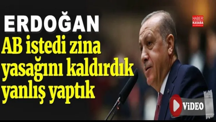 Avrupa Birliği'nin talepleri doğrultusunda zinayı serbest hale getirdiklerini söyleyen Cumhurbaşkanı Erdoğan, bu adımların yanlış olduğunu belirterek, konunun yeniden ele alınacağını ifade etti.