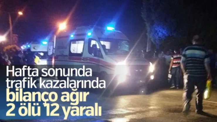 Hafta sonunda Manisa'da hafta sonunda meydana gelen trafik kazalarında 2 kişi hayatını kaybetti 12 kişi de yaralandı.