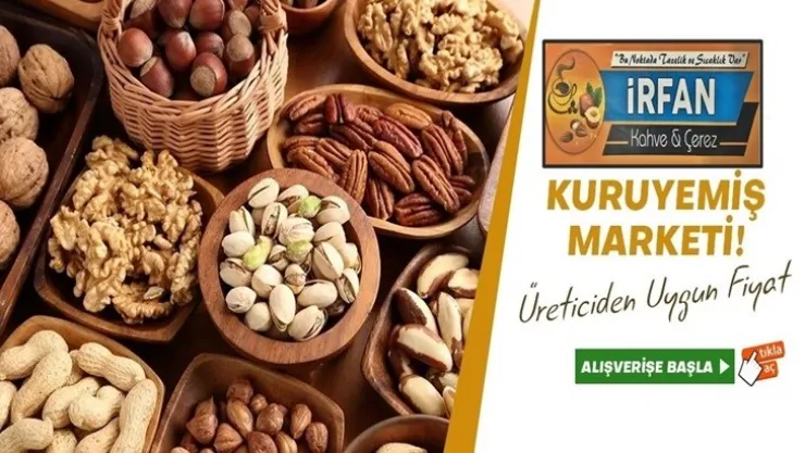 İrfan Kahve & Çerez kuruyemiş dendiği zaman akla ilk gelen markalardan biridir. Ayrıca restoran, kafe ya da pastane sahibiyseniz, müşterilerinize içecek yanı karışık çerez sunmak ya da tariflerinizde kuruyemiş ve kuru meyveler sunmak istiyorsanız doğru tercih İrfan Kahve & Çerez olacaktır.