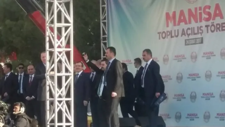 Cumhurbaşkanı Recep Tayyip Erdoğan, toplu açılış törenine katılmak üzere Manisa'ya geldi. Erdoğan'ı Manisa'da Bozkurt işararetleri ile MHP teşkilatları da karşıladı. Uçağı Adnan Menderes Havalimanı'na inen Erdoğan, buradan helikopterle Manisa'ya geçti.
