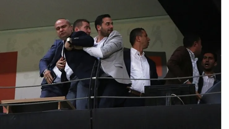 Protokol tribününde bulunan diğer yöneticilerin araya girmesiyle olay sakinleştirildi.