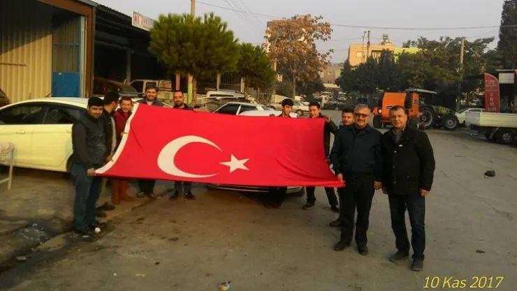 Turgutlu Sanayi esnafı da Atasını unutmadı. Turgutlu'da 09:05 geçe sanayi çalışanları ve vatandaşlar Tük bayrağı açarak atasını selamladı.