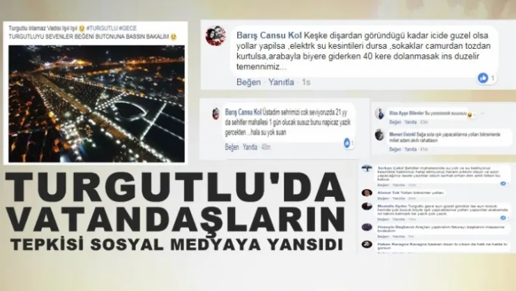 Yaz aylarında yollardan kalkan tozlar nedeni ile zorluk yaşayanlar şimdide yağmurların başlamasıyla birlikte çamurlardan biriken sulardan özellikle şehir merkezinde, yolları kullanan hem yayalar, hem de taşıt kullanan vatandaşlar canından beziyor. Son olarak bir sosyal medya hesabı üzerinden yapılan paylaşım sonrası Turgutlulu Vatandaşların yaptığı yorumlar Vatandaşların ne kadar zor şartlar altında hayatlarına devam ettiklerini bir kez daha gözler önüne serdi.